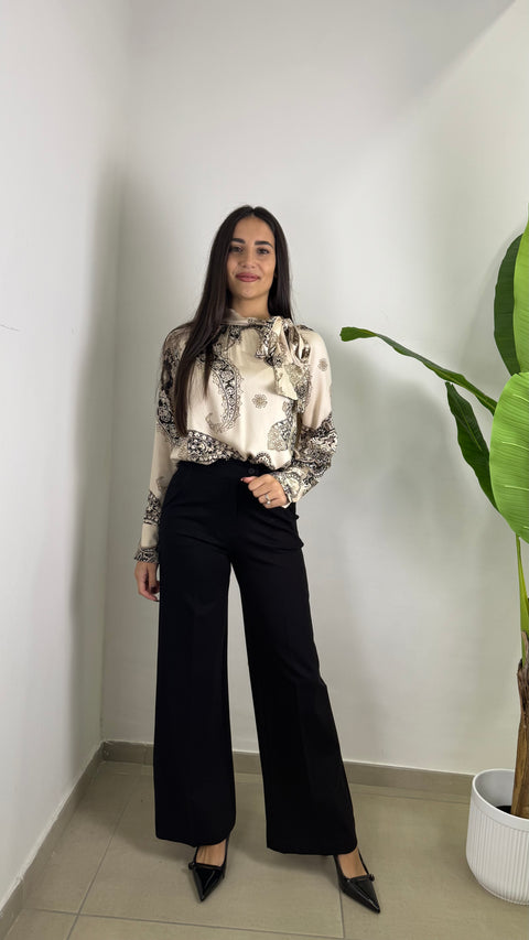 Pantaloni modello a palazzo in tessuto punto Milano.